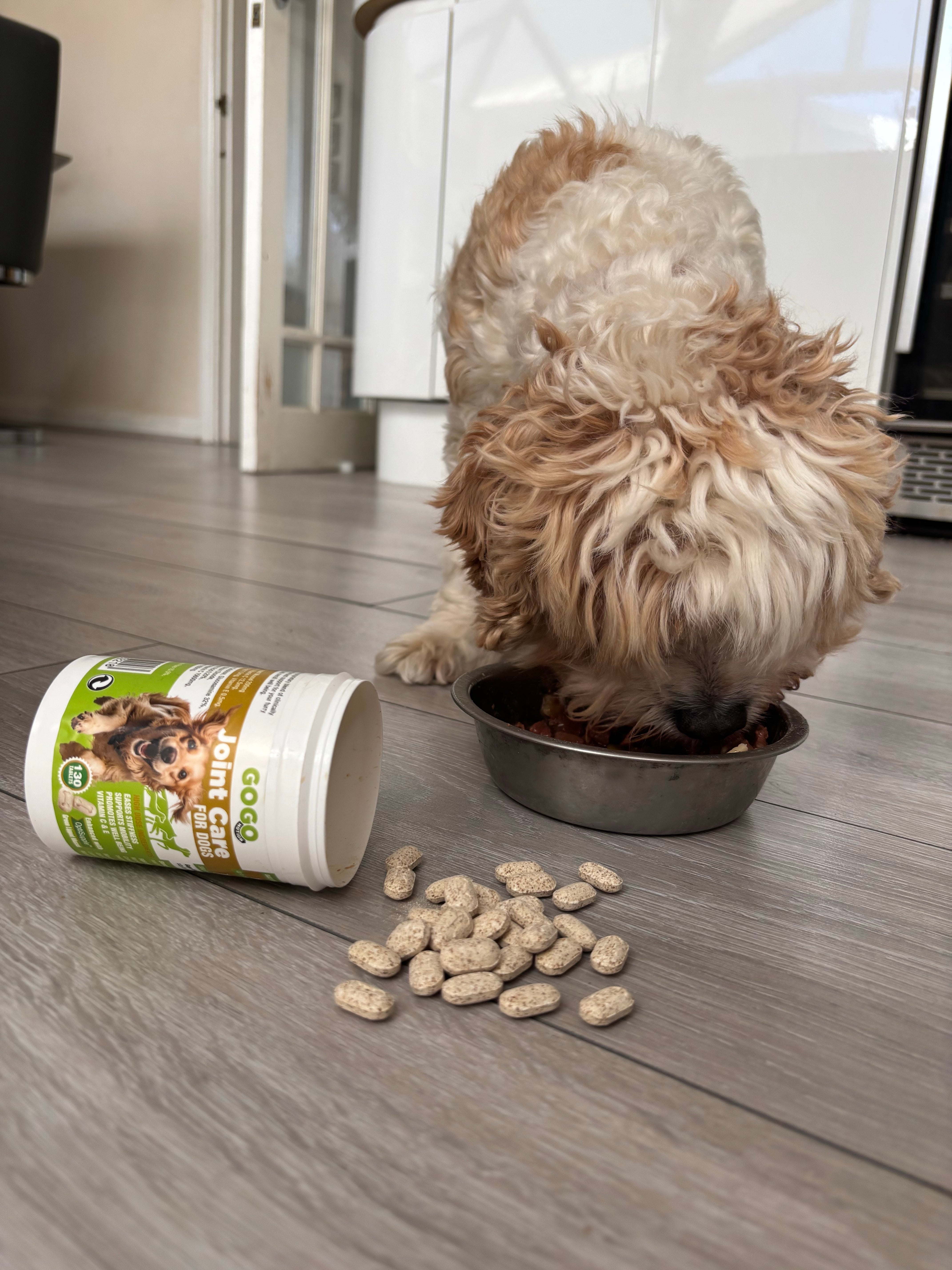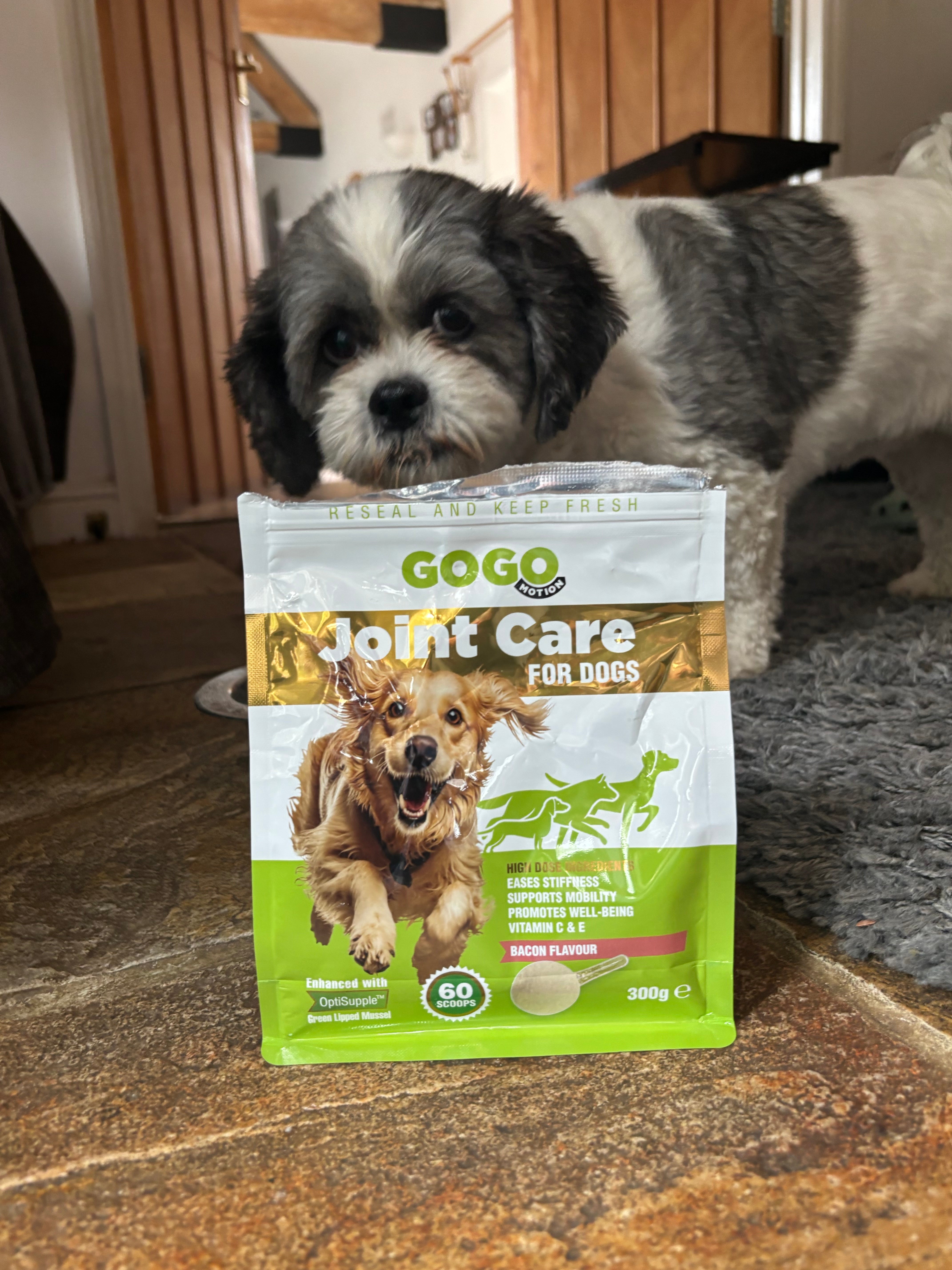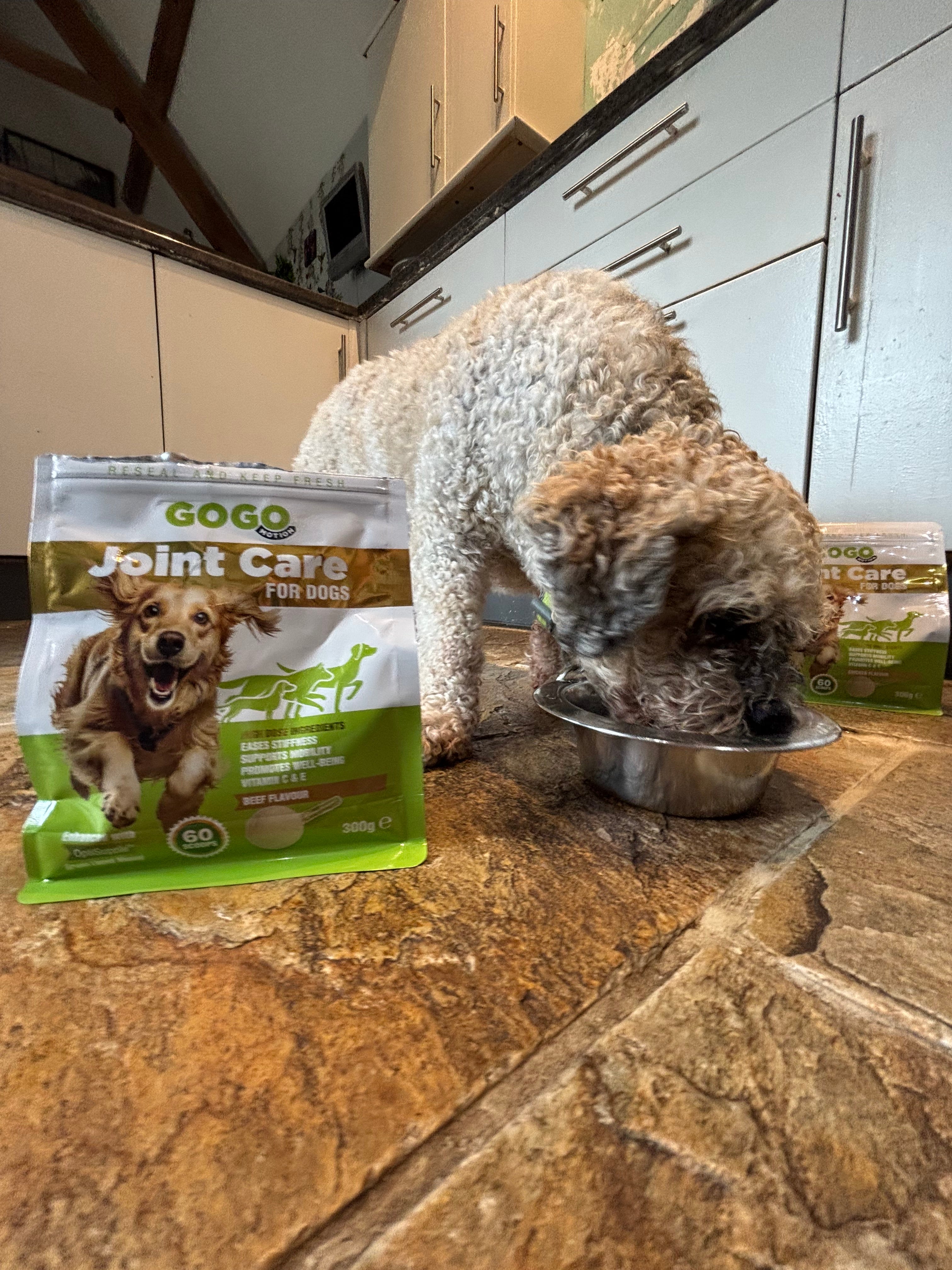 Gogo Motion Joint Care advises doubling your dog's serving size for the first 4-6 weeks for the best support and results.